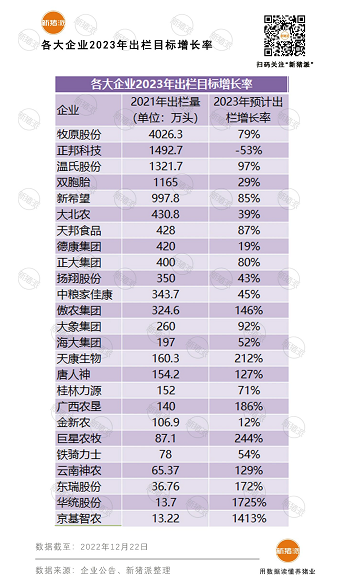 25家豬企2023年目標(biāo)出欄2.18億頭