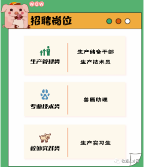 瑞東目前招聘多為校招,崗位分別是生產(chǎn)儲備干部、生產(chǎn)技術(shù)員、獸醫(yī)助理、生產(chǎn)實習(xí)生。