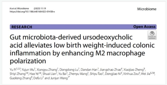 在養(yǎng)豬生產(chǎn)中,宮內(nèi)生長受限(Intrauterine growth restriction, IUGR)豬的發(fā)生率高達(dá)20%,其導(dǎo)致仔豬出生重低以及繼發(fā)的哺乳期高死亡率和全期低生長性能,是養(yǎng)豬業(yè)目前存在的突出問題之一。前期的研究結(jié)果顯示,IUGR導(dǎo)致的仔豬低出生體重(LBW)與出生后腸道炎癥狀態(tài)密切相關(guān)。然而,關(guān)于LBW導(dǎo)致腸道炎癥發(fā)生發(fā)展的分子機(jī)制尚不清楚。為此,《腸道微生物代謝產(chǎn)物熊脫氧膽酸通過促進(jìn)腸道M2型巨噬細(xì)胞極化緩解低出生重仔豬結(jié)腸炎癥》研究綜合運用靶標(biāo)膽汁酸代謝組和微生物組學(xué)技術(shù)、糞菌移植和巨噬細(xì)胞清除等研究手段,探究了膽汁酸(BAs)在LBW新生仔豬誘導(dǎo)腸道炎癥中的介導(dǎo)作用及其分子機(jī)制。