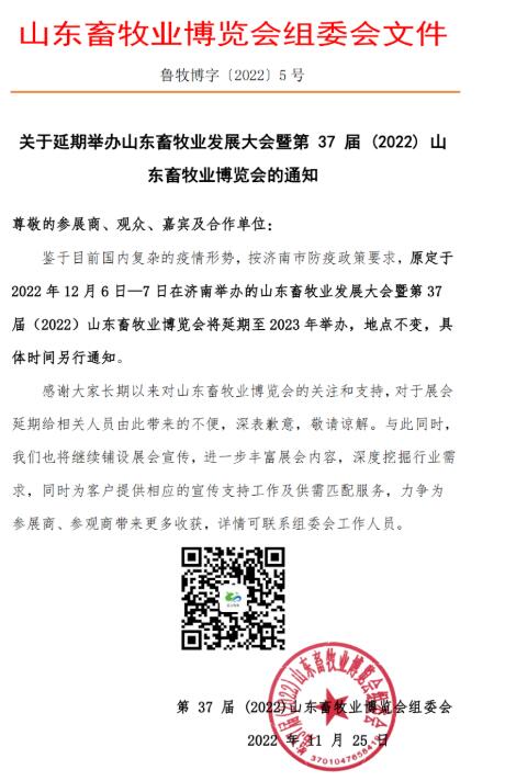 鑒于全國經(jīng)濟社會活動的有序復蘇和展覽活動的逐漸重啟,為促進行業(yè)經(jīng)濟平穩(wěn)運行,提振行業(yè)信心,加快推進畜牧行業(yè)的交流與合作,經(jīng)與多方充分溝通及協(xié)調(diào)后決定:第37屆山東畜牧業(yè)博覽會定于2023年3月16-17日復展,地點調(diào)整為:山東高新國際會展中心(濟南市歷下區(qū)高新技術開發(fā)區(qū)新宇南路 1號)。