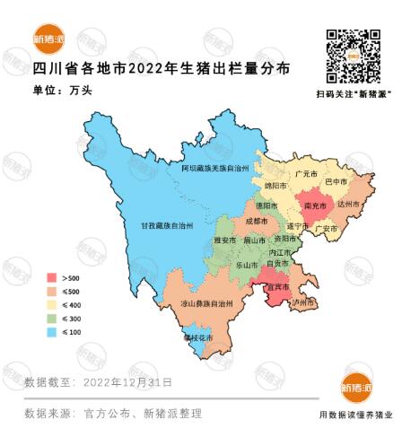 據(jù)新豬派統(tǒng)計,四川省養(yǎng)豬產(chǎn)能分布較為均衡,第一梯隊為南充、宜賓、涼山、達(dá)州、成都、瀘州等地,這些地區(qū)的生豬出欄量都在400萬頭以上,合計占全省的44%比重;第二梯隊為遂寧、廣元、廣安、綿陽、巴中等地,5地生豬出欄量均在300-400萬頭,合計占全省的28.8%。
