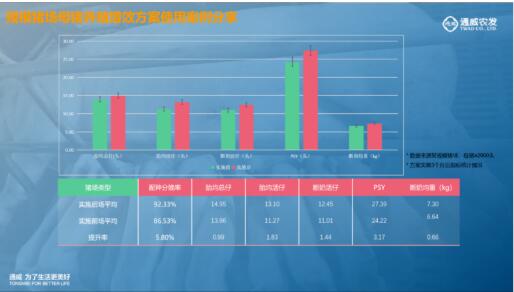 威可凈作為提免重點(diǎn)產(chǎn)品,與增效強(qiáng)化后的通威泰萬菌素聯(lián)用,形成了具有行業(yè)特色的藍(lán)耳病綜合解決方案——通威藍(lán)耳調(diào)理增效套餐(通威泰萬菌素+通威威可凈+通威應(yīng)激寶)。截止目前,該套餐累計(jì)推廣銷售相關(guān)中藥類產(chǎn)品物資近500余噸,累計(jì)推廣使用母豬超70萬頭.次,母豬生產(chǎn)成績(jī)改善明顯,綜合效果表現(xiàn)主要為:易發(fā)情、排卵多、產(chǎn)仔多,窩均產(chǎn)仔多1頭的效果。