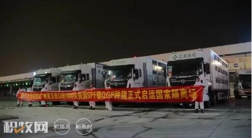 1000頭SPF級GGP種豬卸機后,永信農(nóng)牧籌備組統(tǒng)一將種豬從木箱轉(zhuǎn)到了10輛空調(diào)車上。此次運輸車輛全部嚴(yán)格按照海關(guān)檢驗檢疫要求進(jìn)行檢測,10輛空調(diào)車檢測結(jié)果全陰性,保障了該批種豬的高健康度。轉(zhuǎn)運期間,10輛空調(diào)車在警車的協(xié)助下,緩緩駛?cè)胗佬呸r(nóng)牧信陽國家隔離場,即將進(jìn)行為期45天的隔離,45天隔離期滿后放行,再次轉(zhuǎn)運進(jìn)入永信農(nóng)牧泰寧核心場。