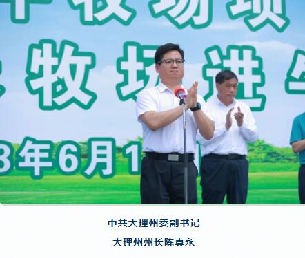 為認(rèn)真貫徹落實(shí)省、州黨委、政府加快推進(jìn)大理乳業(yè)高質(zhì)量發(fā)展的決策部署,推進(jìn)大理州打造世界一流“綠色食品牌”示范區(qū)建設(shè),以萬頭牧場項(xiàng)目為契機(jī)全力推動全州乳產(chǎn)業(yè)高質(zhì)量快速發(fā)展。6月16日上午,來思爾乳業(yè)第二座萬頭牧場,也是此次大理州“8+1”萬頭牧場建設(shè)項(xiàng)目首個建成完工的牧場——來思爾云禾牧場進(jìn)牛儀式在大理州祥云縣禾甸鎮(zhèn)隆重舉行。中共大理州委副書記、州長陳真永,州人大副主任王正林,州政協(xié)副主席施雙林,州政府黨組成員、一級巡視員吉向陽,各州級相關(guān)單位和各縣相關(guān)領(lǐng)導(dǎo)出席了儀式。來思爾乳業(yè)總經(jīng)理馬萬平出席了儀式并作表態(tài)發(fā)言。