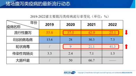 首先是檢測。針對性的防控源自精準、快速的疫病診斷。蔚藍生物在豬腹瀉類疫病的實驗室檢測上,采取的是國標方法,對豬的病毒性腹瀉四大病原以及細菌性腹瀉三種常見致病菌,均建立了相應(yīng)的方法和評價標準。