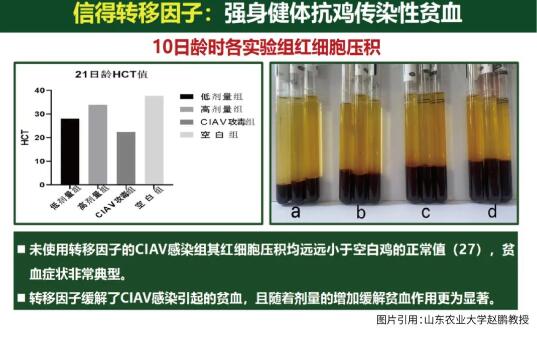 拋開抑制病毒感染而言,信得轉(zhuǎn)移因子對生長性能也有促進作用。實驗中我們發(fā)現(xiàn),使用了高劑量信得轉(zhuǎn)移因子的實驗組雞群,即便有傳貧感染體重仍然能夠接近正常SPF雞的水平。