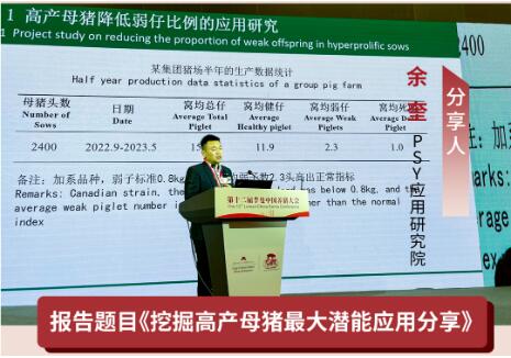 2023年10月20日上午,PSY應(yīng)用研究院配懷研究室主任、PTT養(yǎng)豬學(xué)習(xí)院實效教練余奎老師在“新一代養(yǎng)豬獸醫(yī)研討會”上分享了報告《挖掘高產(chǎn)母豬最大潛能應(yīng)用分享》的精彩匯報。余奎老師聚焦母豬效率和育肥效率兩大技術(shù)通路,分享了挖掘高產(chǎn)母豬最大潛能的技術(shù)觀點,希望給大家?guī)硇碌乃伎己蛶椭?br>