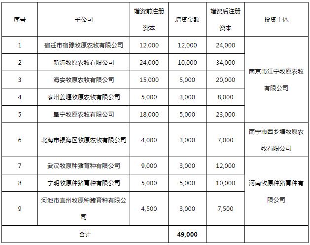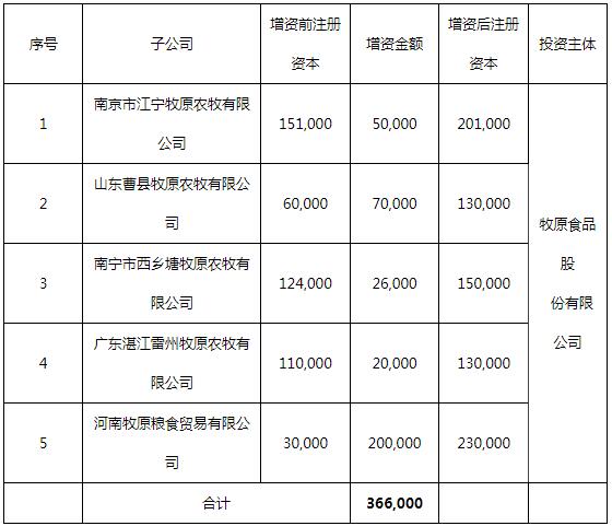 1、牧原股份對(duì)全資子公司增資(單位:萬(wàn)元)