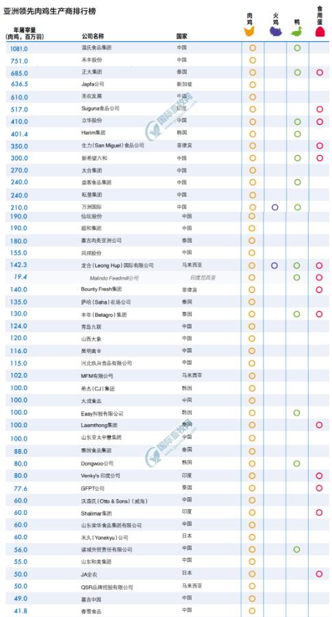亞洲頂尖肉雞企業(yè)57強(qiáng)