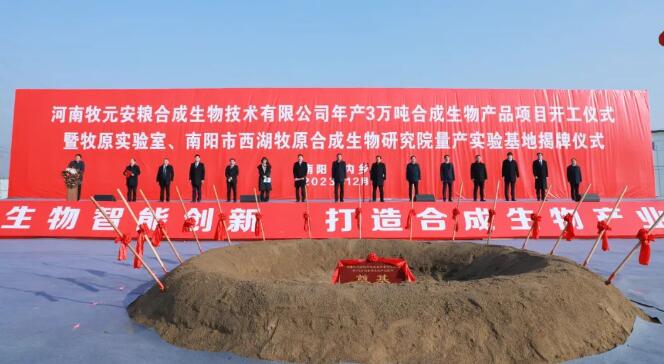 河南牧元安糧合成生物技術(shù)有限公司是由牧原與元素驅(qū)動(dòng)(杭州)生物科技有限公司合資創(chuàng)辦,于2023年2月22日正式成立。規(guī)劃總投資10億元,分三期建設(shè)。一期年產(chǎn)3萬(wàn)噸合成生物產(chǎn)品項(xiàng)目計(jì)劃投資約3億元,規(guī)劃建設(shè)面積125.92畝,建筑面積36087.37㎡。該項(xiàng)目聚焦豆粕減量替代和其他生物基產(chǎn)品,基于合成生物開(kāi)發(fā)新一代“高效、低耗、綠色”的生物智造技術(shù),打造生物發(fā)酵和生物制品的產(chǎn)業(yè)平臺(tái)。項(xiàng)目的實(shí)施將為省、市、縣科技成果轉(zhuǎn)化以及人才建設(shè)注入強(qiáng)大動(dòng)力,為打造國(guó)家生物經(jīng)濟(jì)新產(chǎn)業(yè)創(chuàng)新高地提供強(qiáng)有力支撐。
