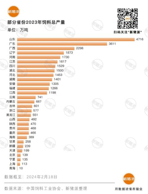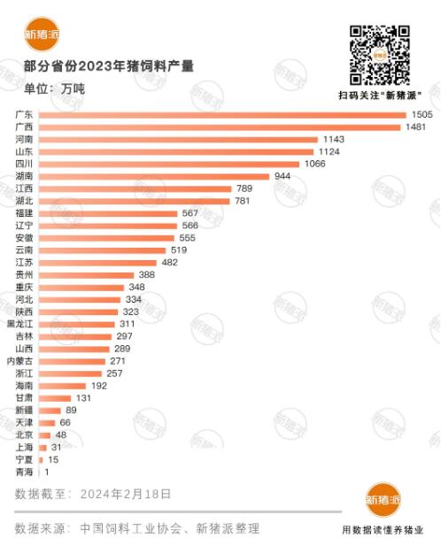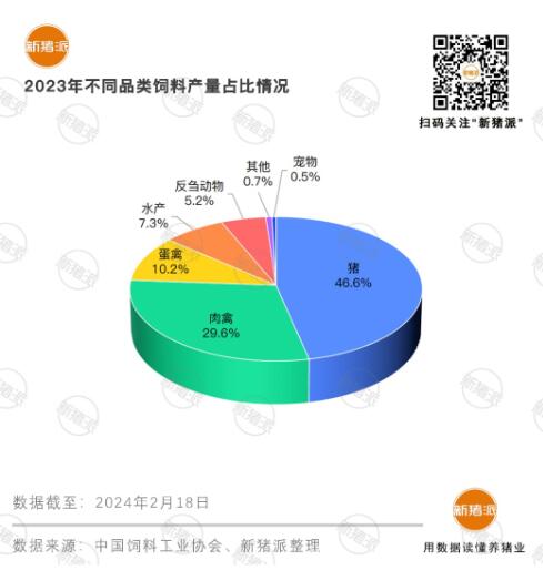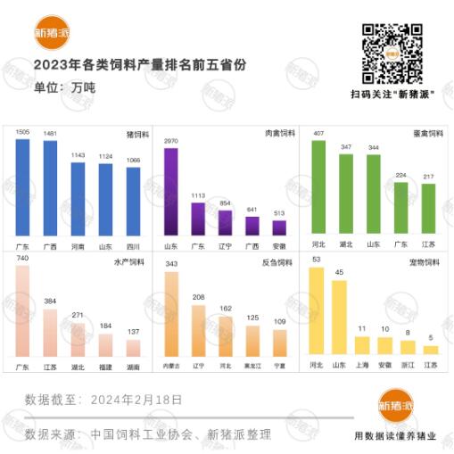 其余品種飼料的產(chǎn)量均同比增長(zhǎng),其中豬飼料產(chǎn)量約為1.50億噸,是唯一占飼料總產(chǎn)量的比重超過(guò)40%的飼料品種,有著“舉足輕重”的地位,較2022年增加了1378萬(wàn)噸,增量之大,相當(dāng)于廣東全省(全國(guó)第一)的豬飼料產(chǎn)量。