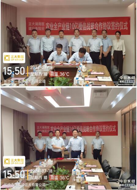 正大集團(tuán)湖南區(qū)與建行衡陽(yáng)分行一致同意在正大產(chǎn)業(yè)鏈項(xiàng)目貸款、公司經(jīng)營(yíng)貸款和下游客戶貸款方面,特別是下游客戶貸款額度純信用單筆最高可做500萬(wàn)元,放款周期控制在10天以內(nèi)達(dá)成戰(zhàn)略合作協(xié)議,整體合作規(guī)模將達(dá)10億元。最后在張居發(fā)行長(zhǎng)和鄧紅成總裁的見證下,由曾斌副行長(zhǎng)與范鐵生總監(jiān)簽訂了正大集團(tuán)湖南區(qū)及建行衡陽(yáng)分行農(nóng)業(yè)全產(chǎn)業(yè)鏈10億授信戰(zhàn)略合作協(xié)議。