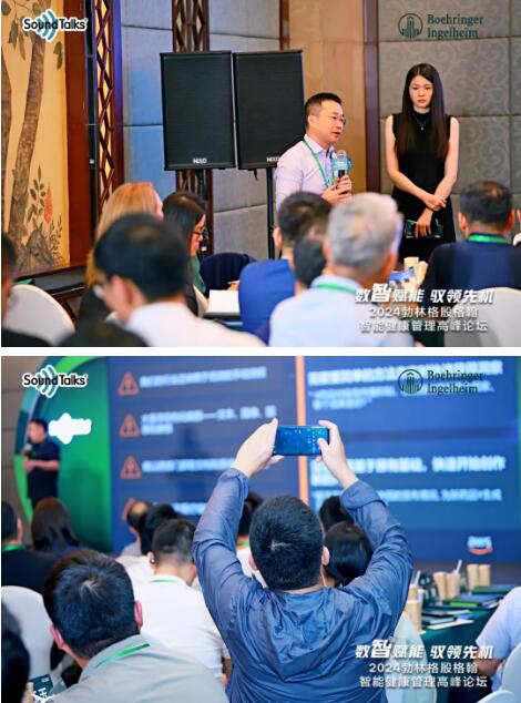此次,勃林格殷格翰重磅組織策劃了2024勃林格殷格翰智能健康管理高峰論壇,為廣大養(yǎng)豬企業(yè)搭建人工智能技術(shù)應(yīng)用交流平臺(tái)。會(huì)前,與會(huì)嘉賓現(xiàn)場(chǎng)體驗(yàn)SoundTalks®咳嗽管家,聽(tīng)取豬群聲音片段,判斷SoundTalks®咳嗽管家燈光顏色,感受智能化與生豬養(yǎng)殖碰撞的火花。