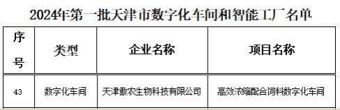近日,天津市工業(yè)和信息化局公布了“2024年度天津市第一批數字化車間”入選名單,天津傲農生物科技有限公司榮列其中。