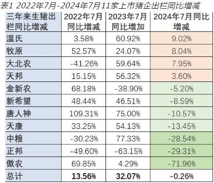 按豬易統(tǒng)計(jì)的11家上市企業(yè)來(lái)看,70%集團(tuán)再7月出欄同比下降。