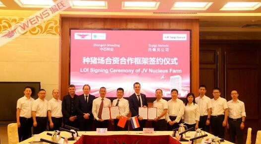 在Ton van de Goor先生介紹完歐洲和荷蘭養(yǎng)豬市場(chǎng)后,雙方正式進(jìn)行了合資合作簽約儀式。