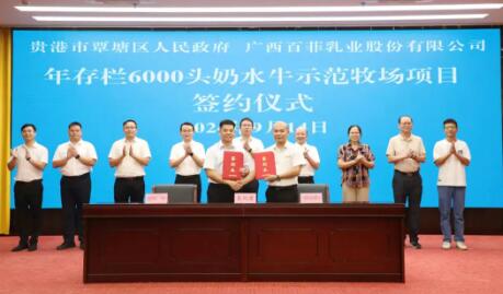 近日,廣西貴港市覃塘區(qū)與廣西百菲乳業(yè)股份有限公司舉行年存欄6000頭奶水牛示范牧場(chǎng)項(xiàng)目簽約儀式。區(qū)委副書記、區(qū)長吳華勇,廣西百菲乳業(yè)股份有限公司董事長吳守允、廣西奶業(yè)協(xié)會(huì)常務(wù)副會(huì)長李仕堅(jiān)、陳學(xué)文出席簽約儀式。區(qū)人民政府副區(qū)長甘國直代表區(qū)政府與廣西百菲乳業(yè)股份有限公司畜牧總監(jiān)黃強(qiáng)簽署投資協(xié)議。