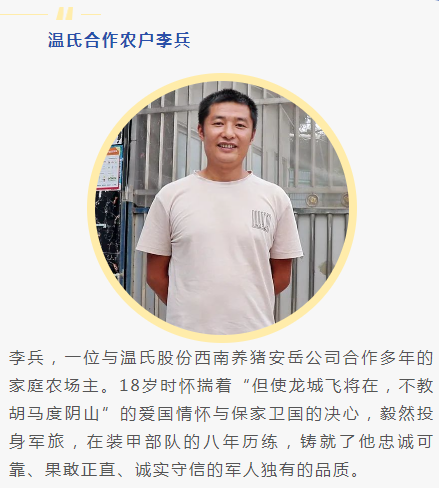 目前,李兵與安岳溫氏合作養(yǎng)殖總存欄生豬規(guī)模達8000頭,年出欄生豬規(guī)模達16000頭?!拔椰F(xiàn)在還有一家養(yǎng)殖場正在談租賃事宜,租下來后,我依然選擇與溫氏公司合作?!崩畋判氖愕卣f道。李兵相信在自己的努力下,與溫氏精誠合作,一定會帶領(lǐng)團隊在養(yǎng)豬行業(yè)披荊斬棘,創(chuàng)造更加輝煌的成就。
